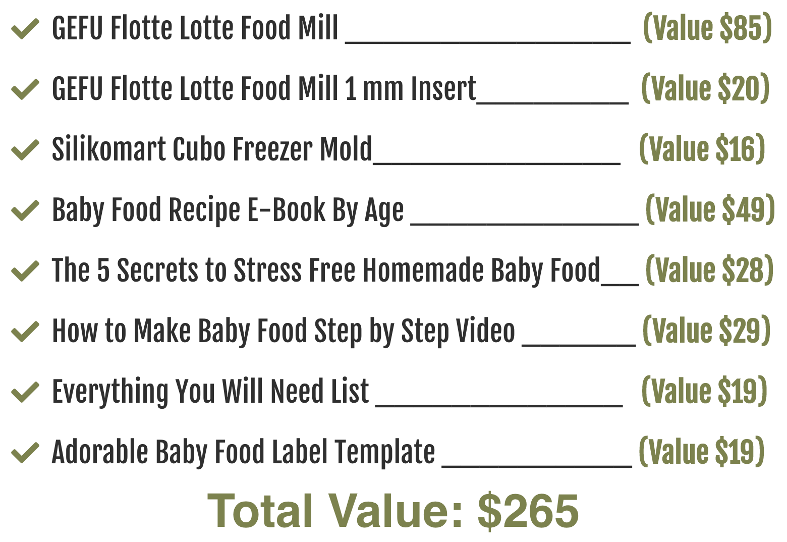 However, with the Flotte Lotte Food Mill, making baby food hardly takes any time at all, and if I make it while I am cooking my own meal, it only adds a few minutes one time a week!!